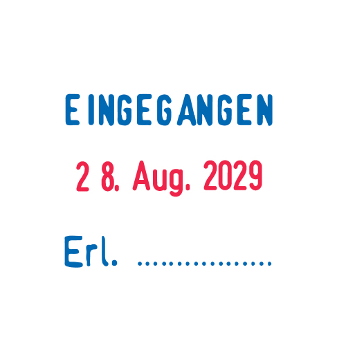 Ebenfalls ist das Ersatzkissen 6/50/2 zweifarbig (Datum rot - Text blau)erhältlich.