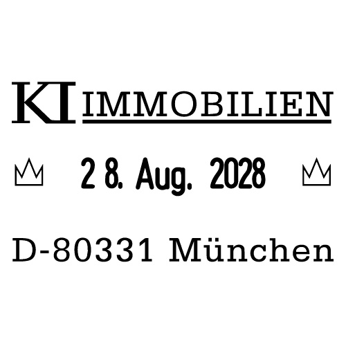 Er verfügt über eine 40 x 23 mm große Textplatte, die mit Text über und unter dem Datum gestaltet werden kann.